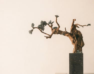 Intertwined by James Hardwood is a sculpture installation designed to describe and highlight our dependency and cohabitation with the organic world. Utilizing natural shapes and textures, it invites interaction and interpretation over many hot topics, from climate change to recent oil catastrophes to the passage of time.